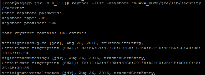 keytool -list -keystore "%JAVA_HOME%/jre/lib/security/cacerts"